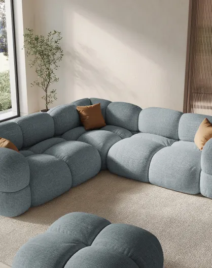Sofá esquinero simétrico Loretto de 4 plazas azul pastel - 250x250x68 cm