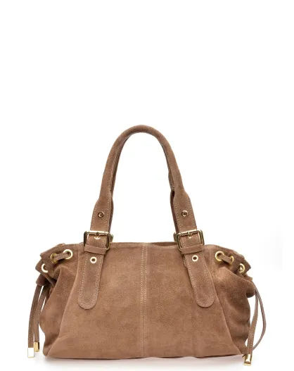 Bolso Marina de piel aterciopelada beige con bandolera - 34x31x14 cm