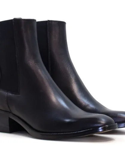 Botas CA-1079 de piel krust negra - tacón de 5,5 cm