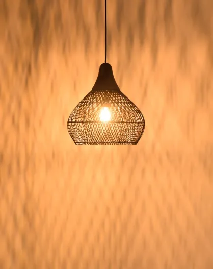 Suspensión tipo campana de 40x40 cm en ratán negro y teca