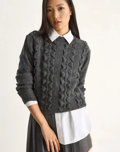 Jersey de punto de manga corta en bloques de color antracita con bolsillos