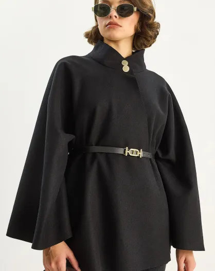 Chaqueta acolchada con detalles de piel y cinturón negro