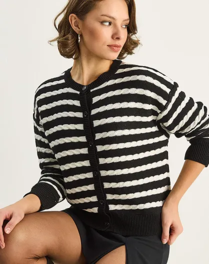 Chaleco de punto a rayas con detalles trenzados negros