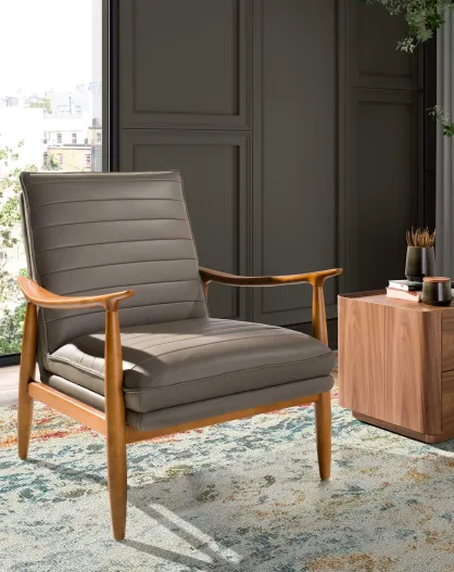 Sillón de piel con respaldo gris/nogal - 75x80x89 cm