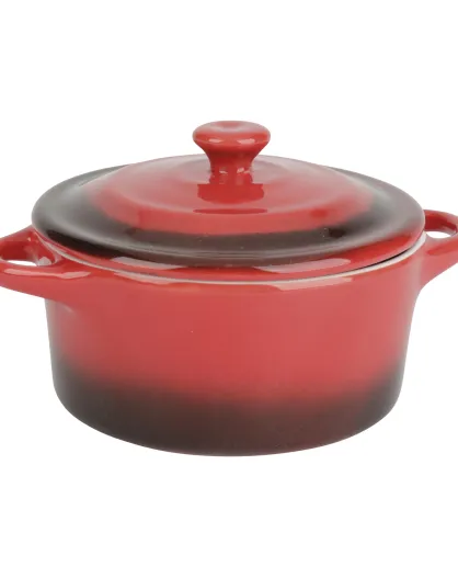 Mini cazuela redonda de gres esmaltado rojo - D.10x5 cm