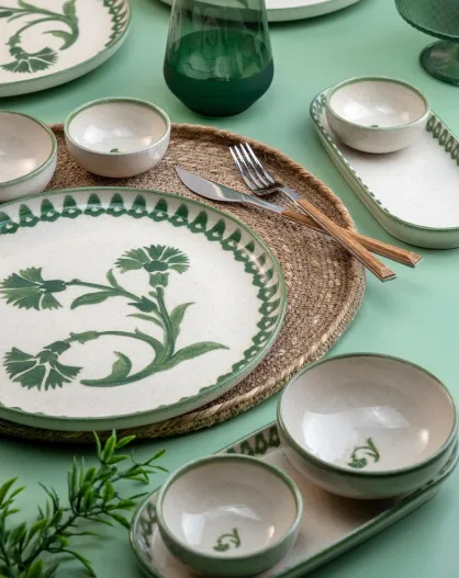 Set de vajilla blanco/verde - 18 piezas