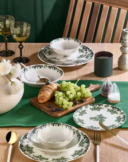 Servicio de mesa blanco/verde - 24 piezas