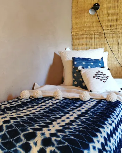 Tela escocesa bereber con pompón bicolor - 250x150 cm