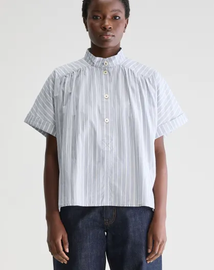 Blusa camisero blanca Antoine con estampado floral y cuello lavallier