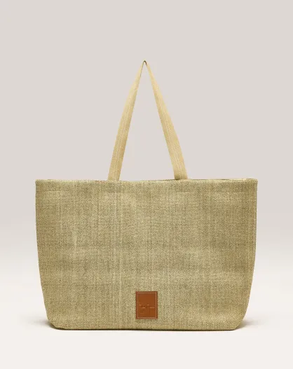 Bolso Helena de piel beige - 28x47x8 cm