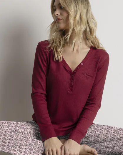 Pijama con flores geométricas A burdeos
