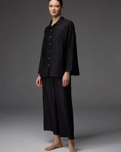 Conjunto de pijama negro con cuello camisero BM-1827