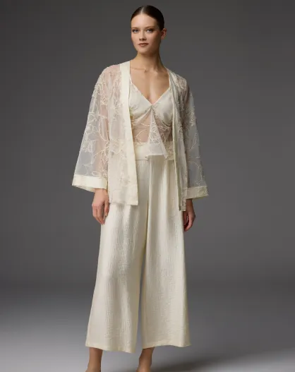 Conjunto de pijama BJM-1741 en color crudo con detalles brillantes