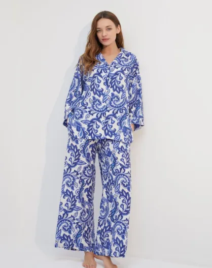 Conjunto de pijama estampado azul/blanco BJM-1747