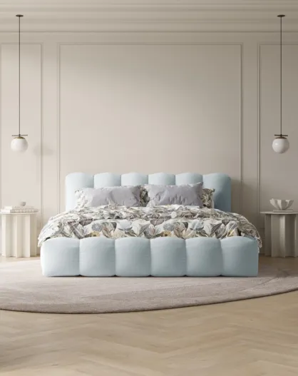 Cama cómoda Cameron de terciopelo beige con cabecero - 226x226x95 cm
