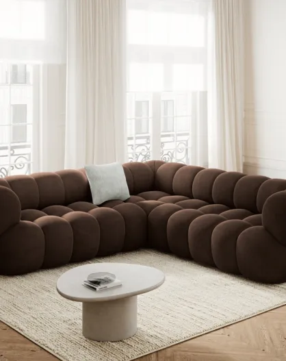 Sofá esquinero modular de terciopelo Maurice chocolate - 245x245x70 cm