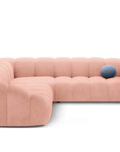 Sofá de esquina izquierda de terciopelo rosa Lyna - 280x182x72 cm