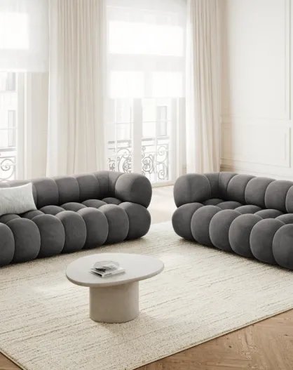 Sofá Maurice de terciopelo gris - 210x95x70 cm