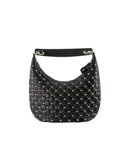Bolso de hombro Avila de piel negra laminada - 18x12x5 cm