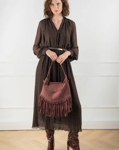 Bandolera Lexi de piel aterciopelada burdeos - 28x28x11 cm