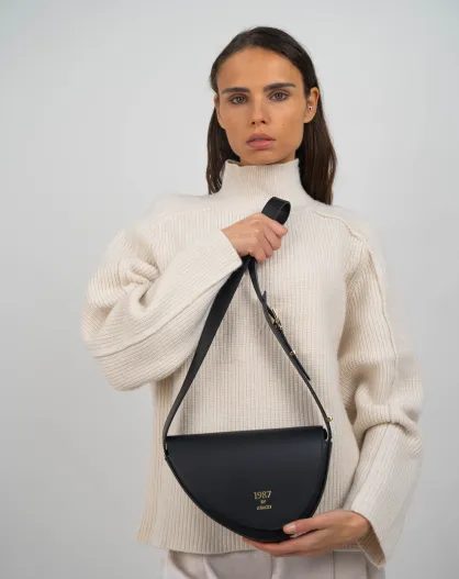 Bandolera Romy de piel negra - 19x18x7 cm