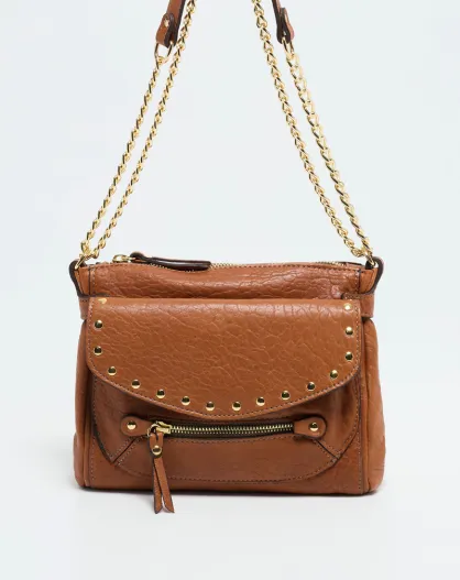 Bandolera Yasmine de piel camel - 25x20x5 cm