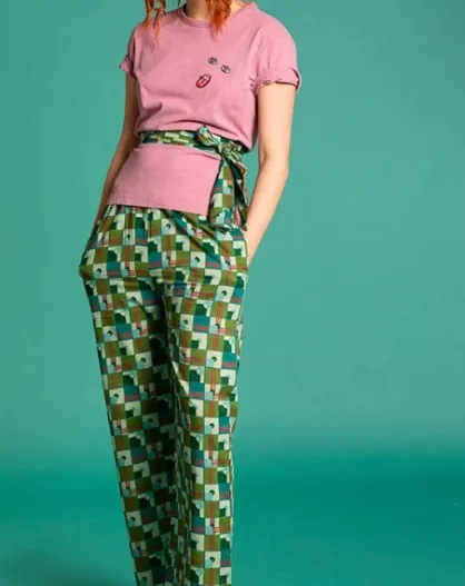 Pantalones anchos y fluidos con estampado de pata de gallo de color azul