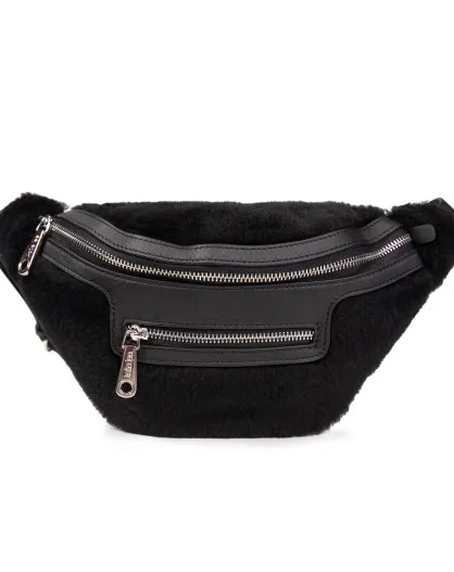 Riñonera Triomf Fur Leo de piel negra - 20x12x6 cm