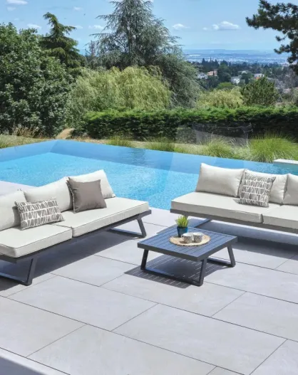 Muebles de jardín bajos Renzo en acero y acacia greige