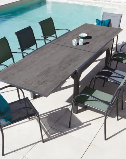 Juego de comida de pizarra pspc Jonfleur XL: 1 mesa y 8 sillas Beziers antracita y verde salvia