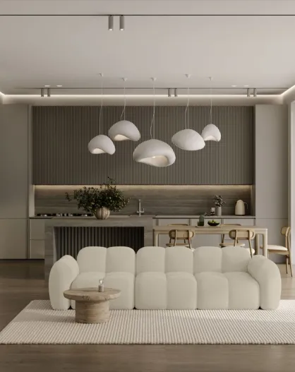 Sofá esquinero panorámico Loop 9 beige - 272x428x85 cm