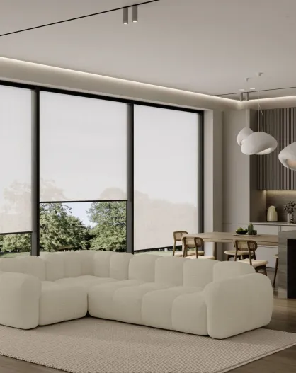 Sofá panorámico convertible color crema Efsun - 300x78x80 cm