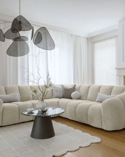 Sofá modular con puf Bubble ecru - (288x190) x95x75 cm