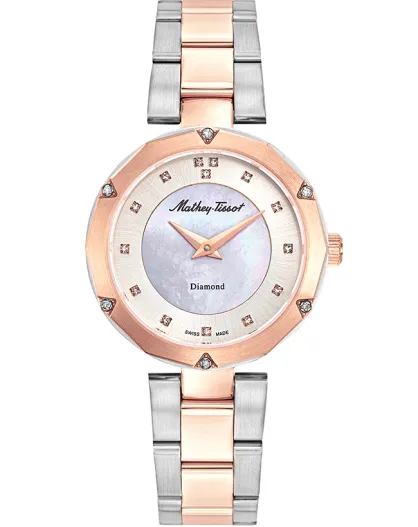Reloj de cuarzo para mujer RONDA 762 fabricado en Suiza en acero bicolor plata/oro rosa