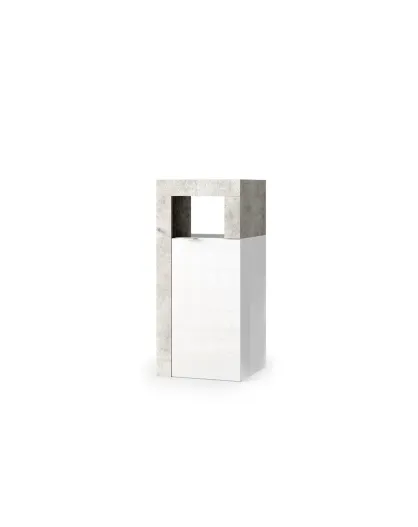 Ancona - Mueble de baño con 1 puerta efecto hormigón, frente lacado en blanco brillante, 35 x 78 x 35 cm
