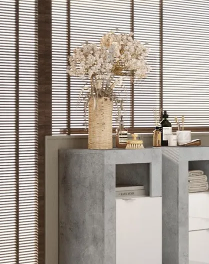 Ancona - Mueble de baño con patas de hormigón coloreado y lacado brillante - 2 cajones + 3 nichos + lavabo sobre encimera - 79x79x49 cm