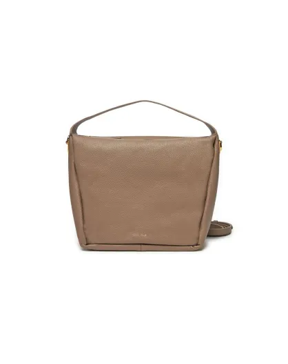 Bolso Oliver de piel granulada cálida de color topo - 30x27x17 cm