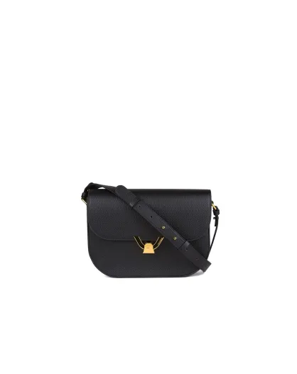 Bandolera Myrtha de piel granulada negra - 23x12x4 cm