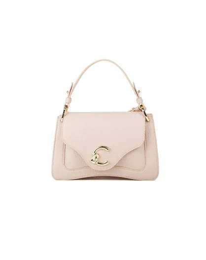 Bolso C-Me de piel granulada beige - 23,5x16x9 cm