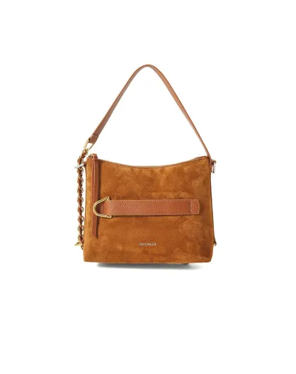 Bolso de hombro suave Magie de piel granulada color brandy - 30,5x18x8 cm