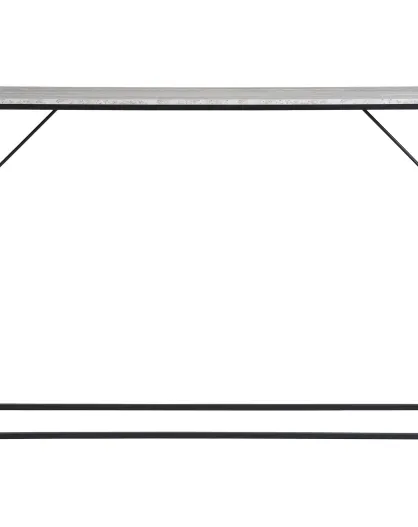 Consola Vita, mesa, consola, 1 estante, aspecto travertino, estructura negra, 110 x 26 x 80 cm
