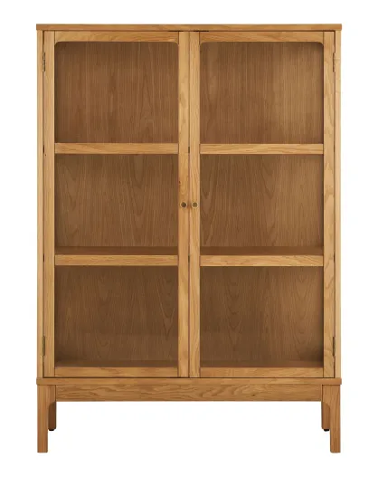 Armario Zamora 2 puertas de cristal, 2 estantes, chapa de roble/cristal templado natural, 90x40x126 cm