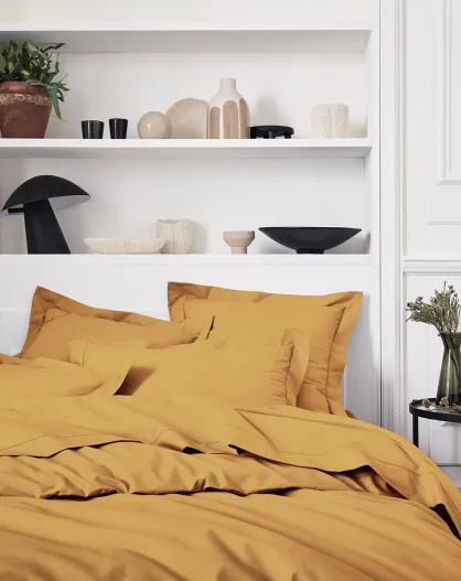 Première - Funda nórdica lisa de percal de algodón amarillo Sahara