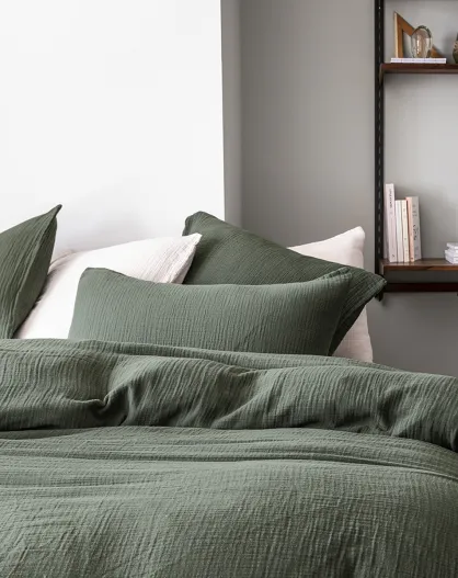 Tendresse - Funda de almohada lisa de gasa de algodón verde