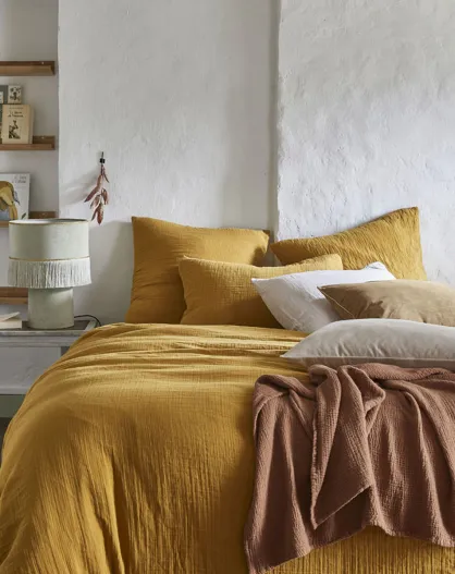 Tendresse - Funda nórdica lisa de gasa de algodón lavado amarillo camel