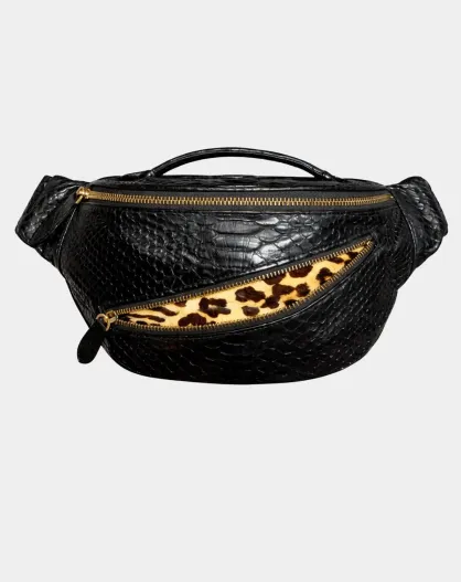 Banana de piel de becerro con estampado de leopardo y forro interior de algodón. Mike Leopard - 34,5 x 14,5 cm