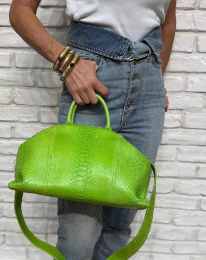 Bolso blando Python con forro interior de algodón Jade Lime, 35 x 22 cm