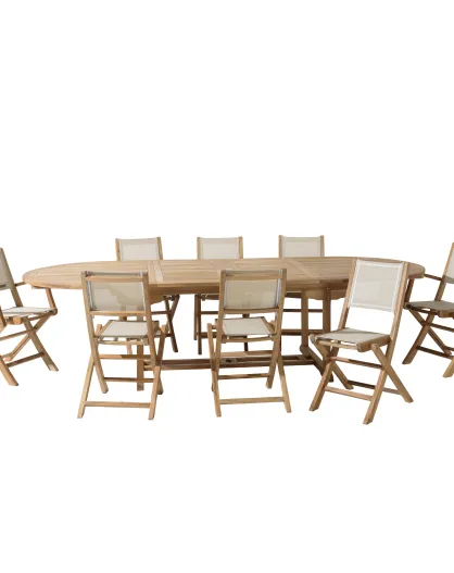 Juego de muebles de jardín para 10/12 personas: 1 mesa ovalada extensible y 8 sillones de color beige