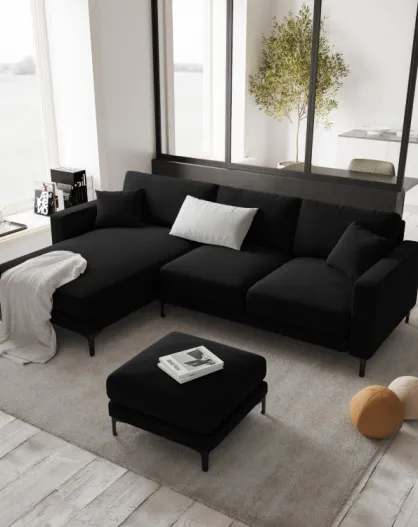 Sofá de esquina derecha Velvet Jasmine 4 plazas negro - 250x170x72 cm