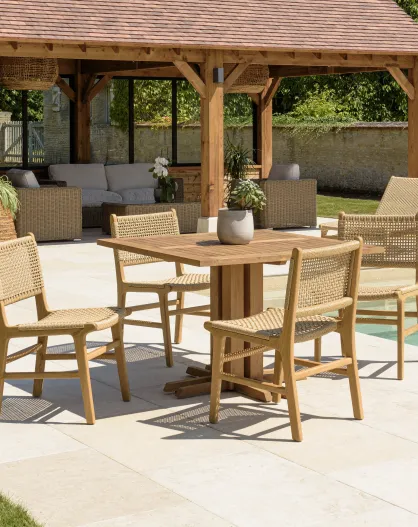 Juego de mesa rectangular con 6 sillas en forma de cruz de madera engrasada Maeva